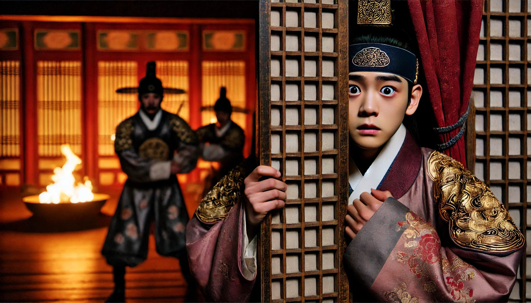 궁녀의 부드러운 재촉에도 태자는 움직이지 않았다. 그의 눈에는 깊은 슬픔과 함께, 이제 막 자라나기 시작한 작은 분노의 씨앗이 보였다.