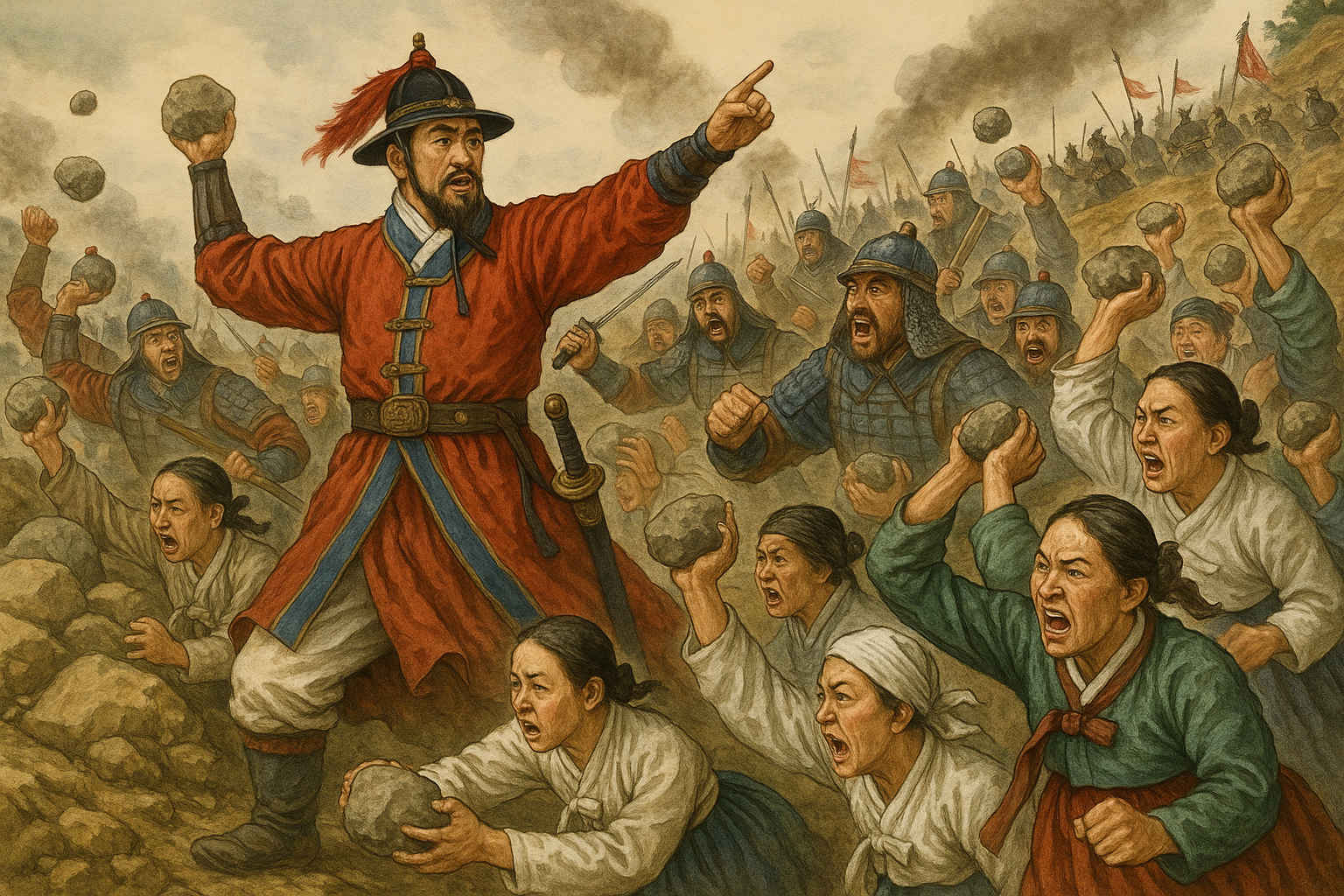 결국 수십 명의 부녀자들이 성 위에 남게 되었습니다. 이들은 치마에 돌을 담아 나르며 군사들을 도왔지요. 이것이 바로 유명한 '행주치마' 이야기의 시작이었습니다.