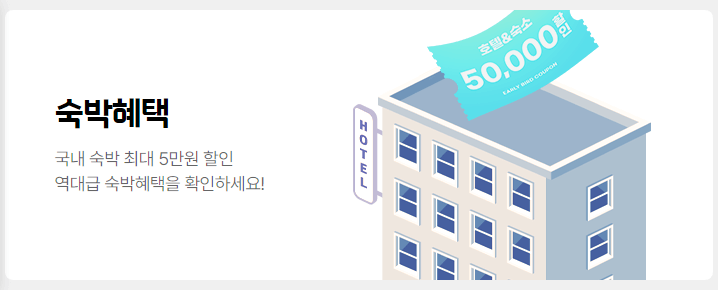 할인을 적용하는 시설은 호텔, 콘도, 리조트, 펜션 등 국내 숙박시설이며 미등록 숙박시설과 대실에는 할인권을 사용할 수 없다.