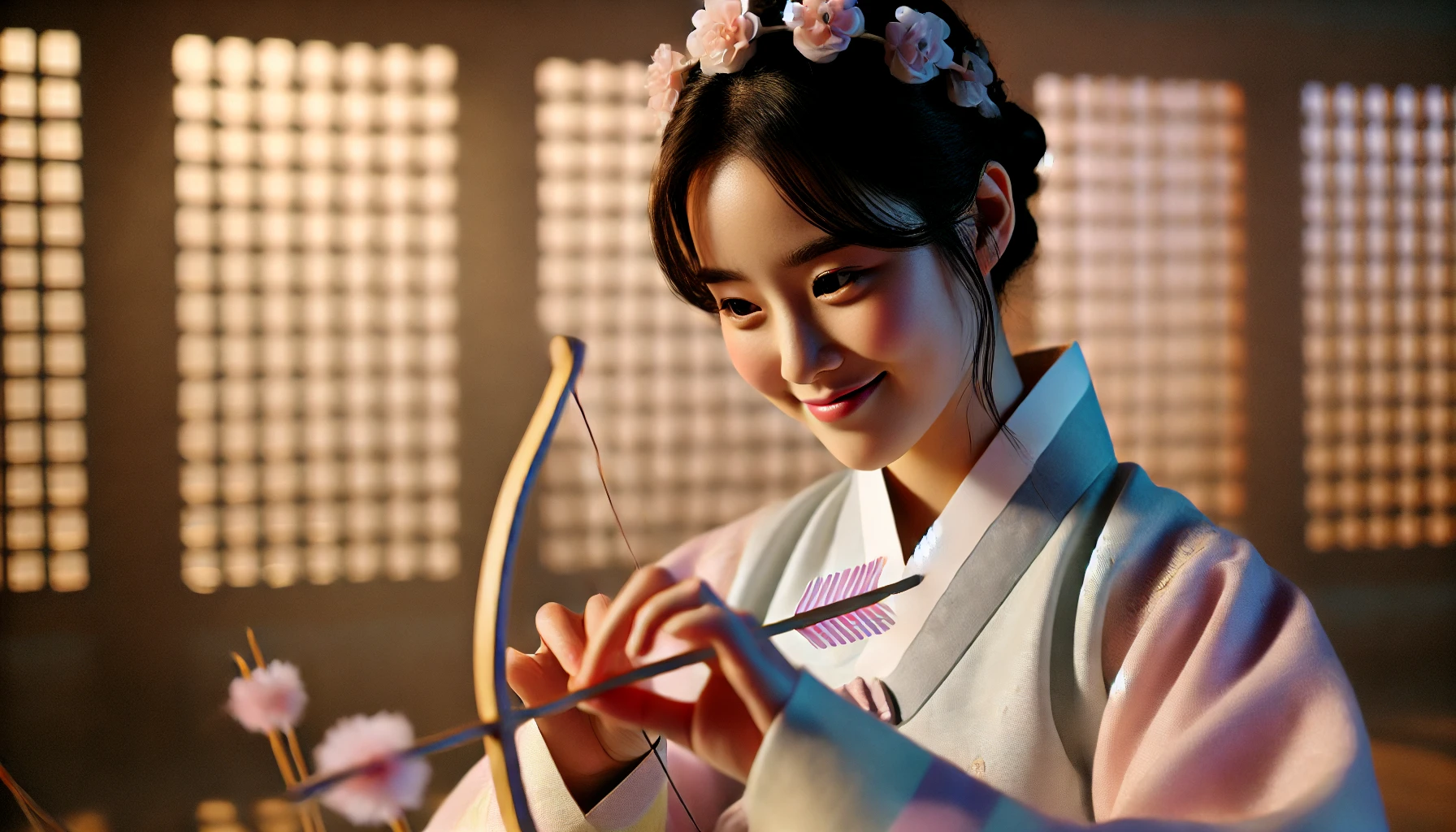 그날부터 아련은 노스님의 제자가 되어 도술을 배우기 시작했습니다. 꽃잎으로 화살을 만드는 법, 화살에 영혼을 불어넣는 법, 그리고 가장 중요한 것은 바로 화살을 쏘는 순간의 마음가짐이었지요.