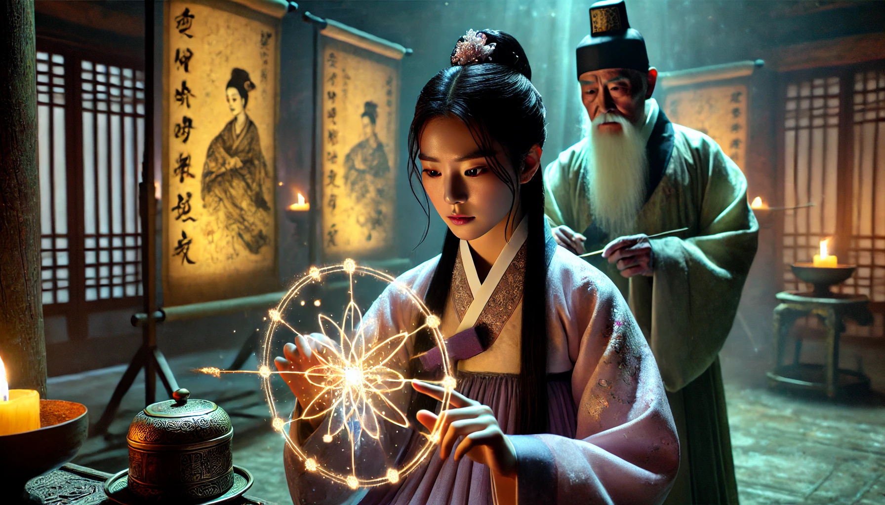 "하지만 스승님, 저는 복수심에 사로잡혀 도화살을 쏘았습니다. 비록 그들이 죄를 지었다 해도, 제가 심판자가 되어 벌을 내린 것은..." 아련의 눈에서 눈물이 흘러내렸습니다.