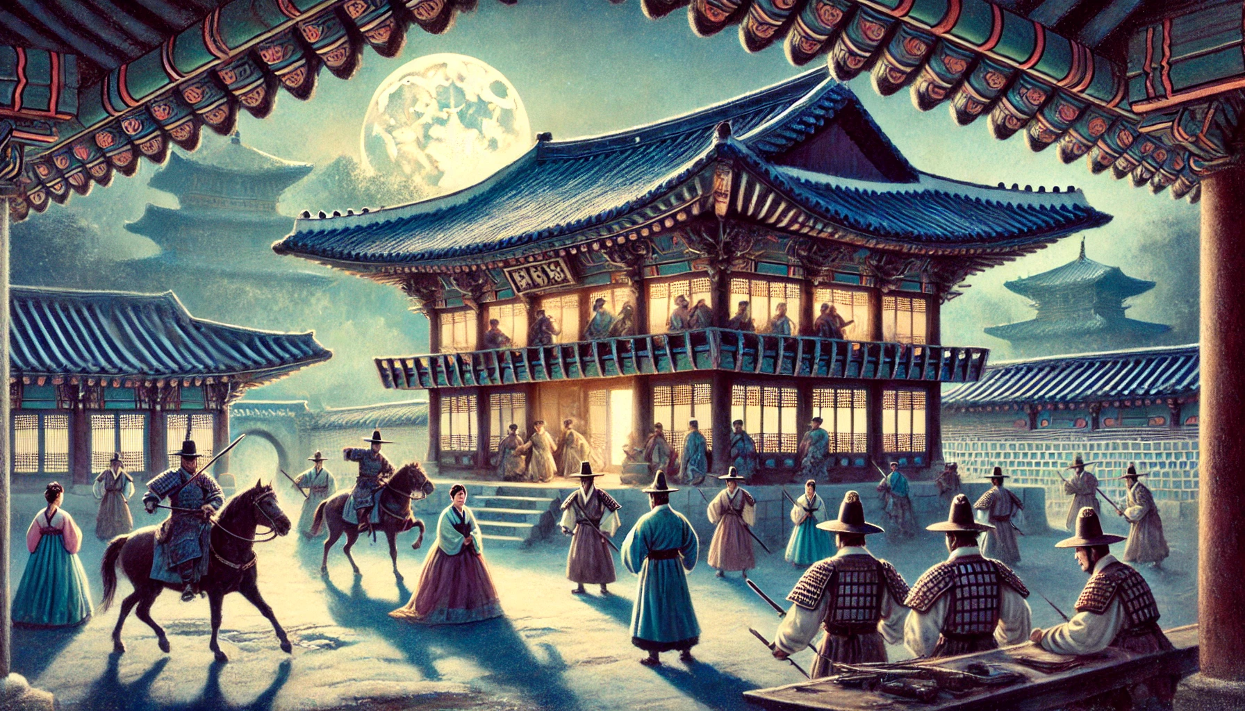 궁궐 안에서는 아비규환이 벌어졌습니다. 갑자기 들이닥친 무장한 무리들에 궁녀들과 내관들이 비명을 지르며 도망쳤습니다. "도적이야! 도적이 들었어!" 궁궐 곳곳에서 울부짖는 소리가 들려왔습니다. 평온했던 새벽이 순식간에 아수라장으로 변한 것입니다.
