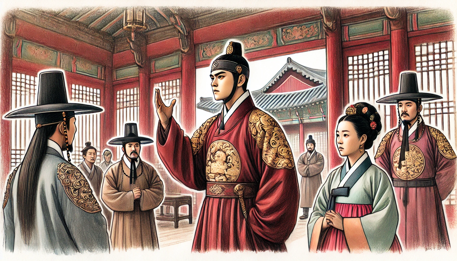 문정왕후가 앞으로 나서며 말했다. "소아가 어리니 내가 잠시 국정을 돌보겠노라. 신하들은 충성을 다하여 나라를 보좌하라."