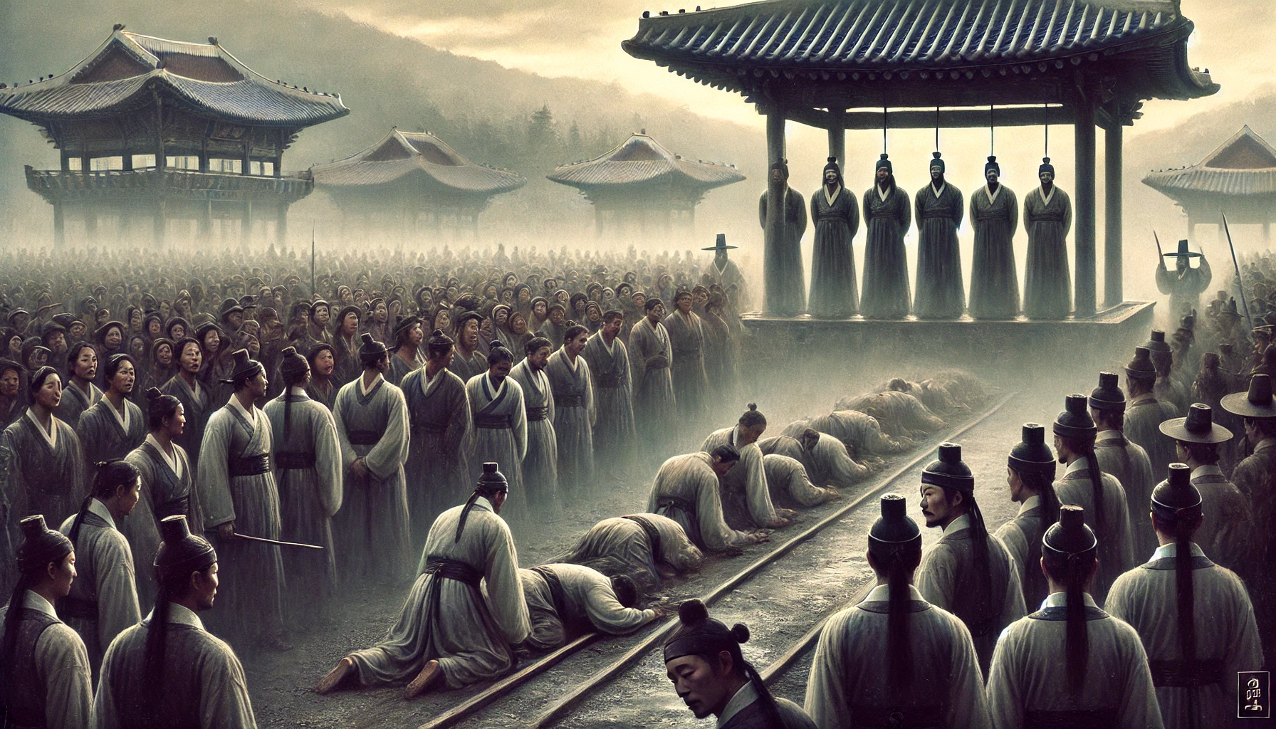 1456년 6월 8일, 한성의 서시장, 즉 오늘날의 서울 서대문 근처에는 많은 사람들이 모여 있었습니다. 그들은 사육신의 처형을 지켜보기 위해 모인 것이었습니다. 하지만 그들의 얼굴에는 슬픔과 분노가 가득했습니다. 백성들은 사육신들이 어린 임금에 대한 충절로 이러한 극형을 받는다는 것을 알고 있었기 때문입니다.