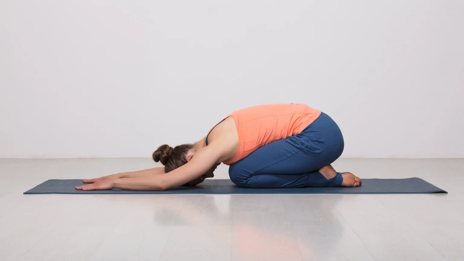 - 방법: 무릎을 꿇고 발 뒤꿈치 위에 앉습니다. 상체를 앞으로 기울여 이마를 바닥에 대고, 팔을 앞쪽으로 뻗습니다. 이때, 척추와 목이 편안하게 늘어나도록 집중하세요. 5분간 이 자세를 유지하며 천천히 깊은 호흡을 이어갑니다.