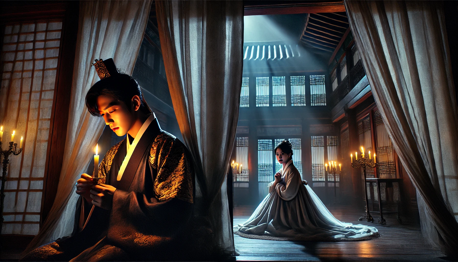 "사랑?" 태종이 비웃듯 말했습니다. "왕이 될 자가 한 여인에게 정신이 팔려 나라를 잊을 수 있다면, 그런 자는 결코 왕이 될 수 없다!"