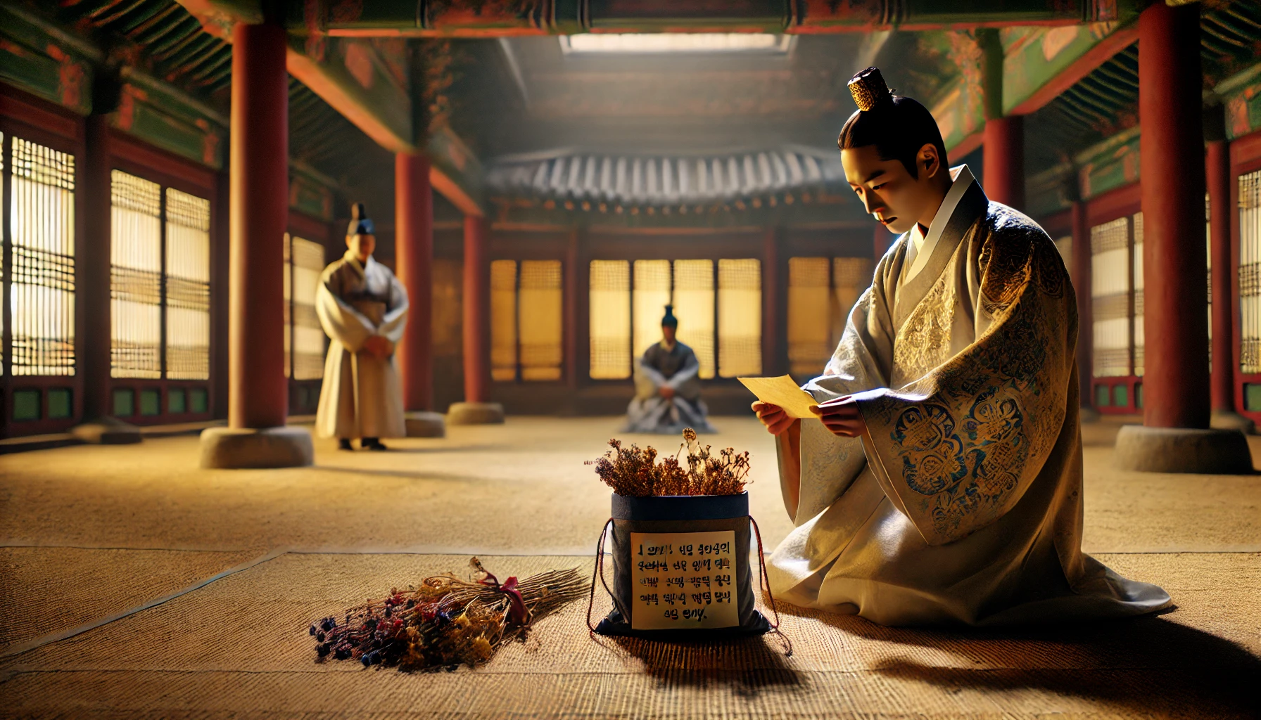 성종은 떨리는 손으로 그것을 받았다. 오래된 꽃잎들이 그의 손바닥 위에서 부서졌다. 마치 그들의 사랑처럼.