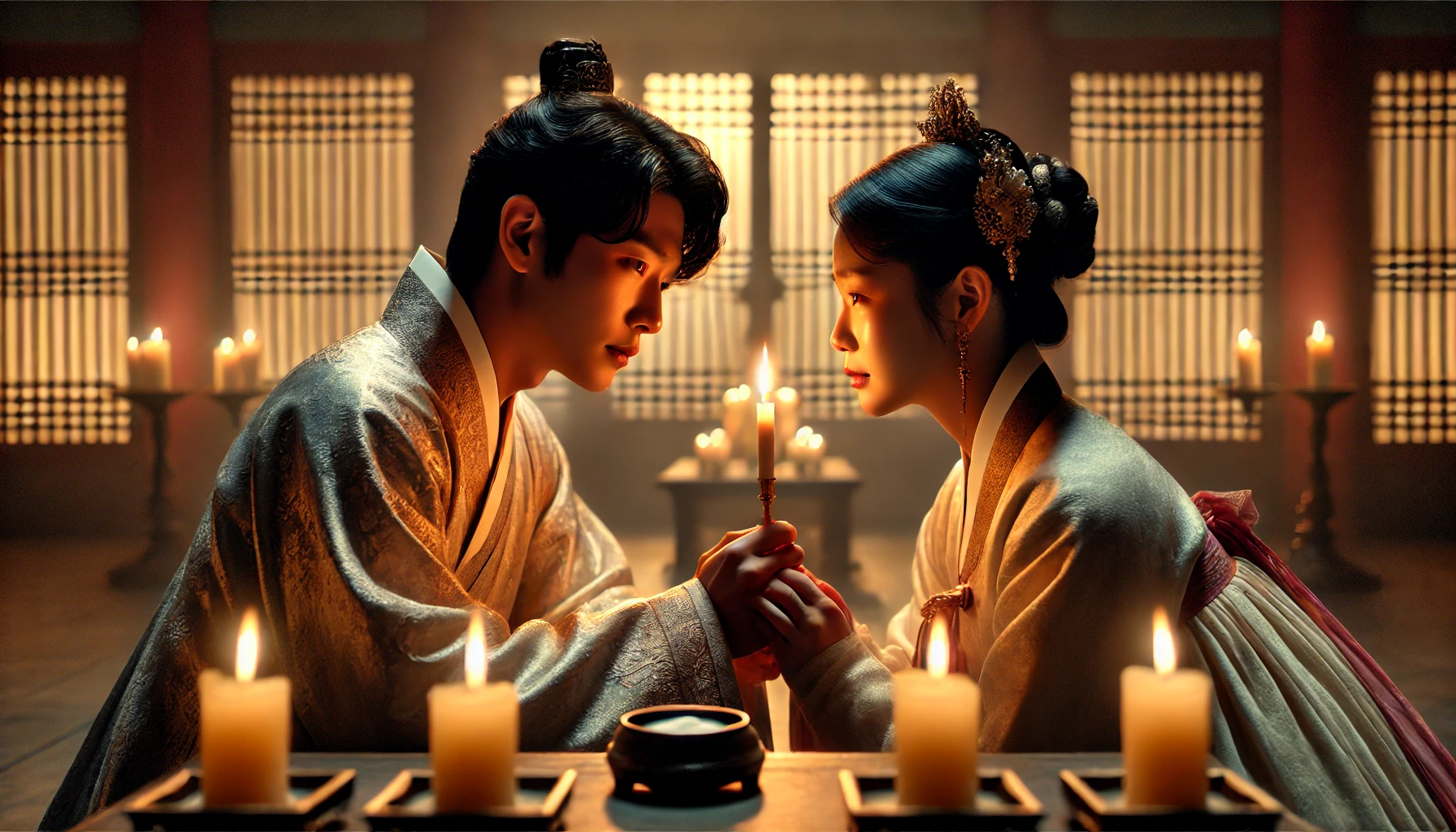 궁녀가 천천히 고개를 들었을 때, 성종의 심장은 멈춘 듯했다. 촛불 아래서 그는 결코 잊을 수 없었던 그 눈동자를 다시 보았다. 맑고 영롱한, 그리고 이제는 여인의 깊이가 더해진 눈동자.