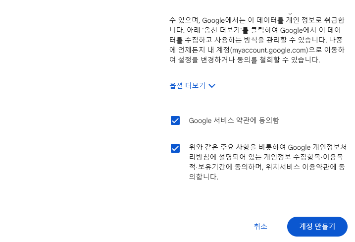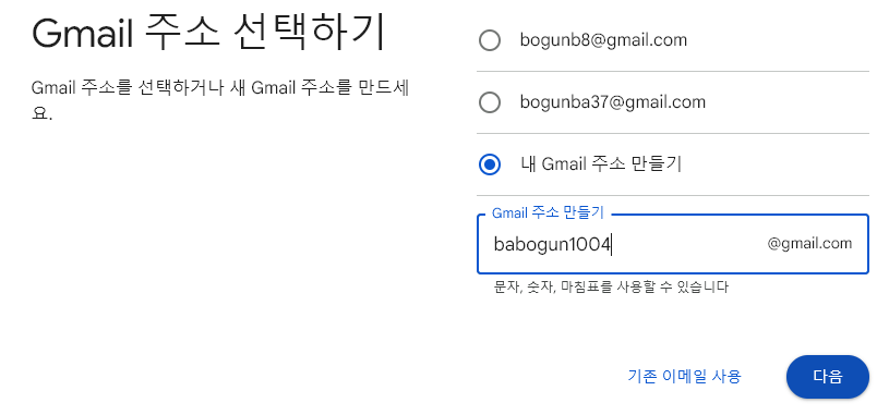 계정 만들기를 클릭하세요 > xxxxx.@gmail.com > id → google email id