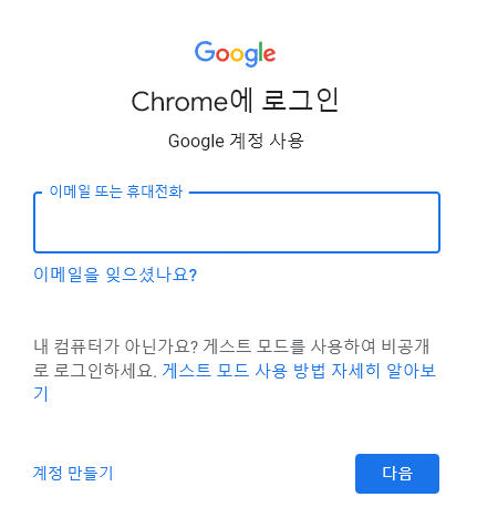 크롬 사용자추가 > 계정없이 계속