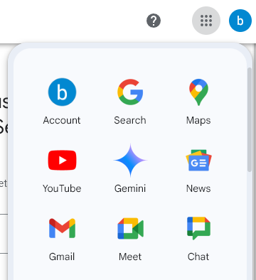mail은 Gmail에서 확인 가능함. 위에화면은 ::: 버튼 투르면 나타납니다.