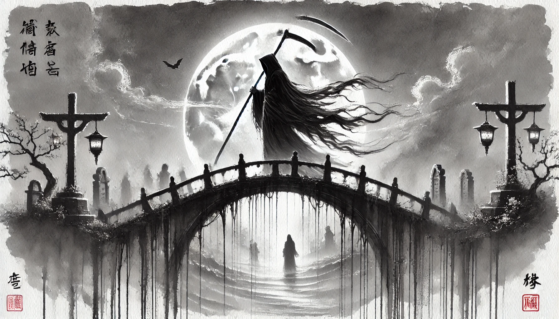 안개 속에서 빛이 점점 사라지고, 다리의 모습이 다시 나타났다. 저승사자는 손을 뻗어 그녀를 이끌며 말했다.