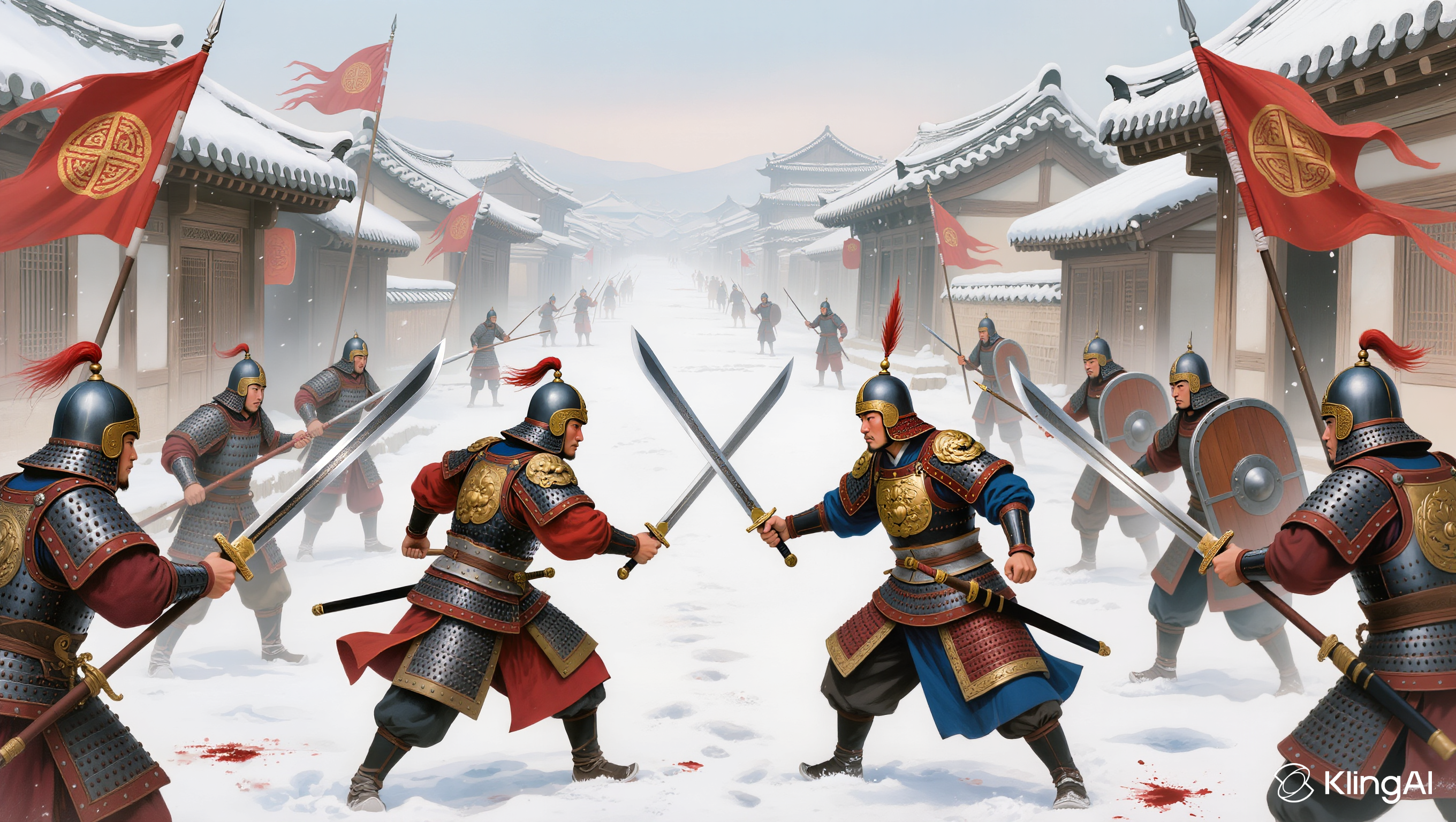 싸움은 선죽교 쪽으로 이어졌습니다. 정몽주가 이방원의 아버지 이성계를 반대하다가 죽임을 당했던 그 다리, 선죽교 근처까지 전투가 확대되었습니다. 개경의 거리 곳곳에서 칼부림이 벌어졌습니다. 백성들은 집 안에 숨어 떨었고, 거리에는 비명과 함성이 울려 퍼졌습니다.