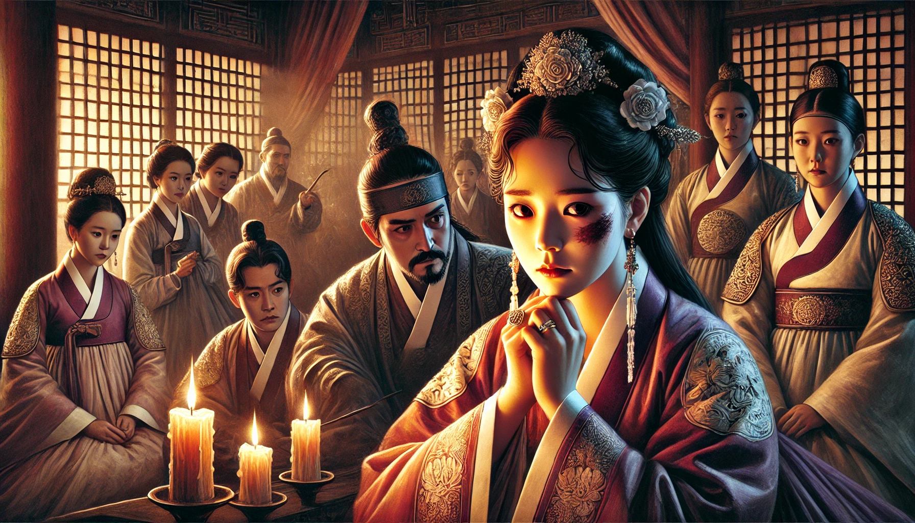 성종 6년, 겨울의 한 밤. 차가운 북풍이 궁궐의 처마를 때리는 소리만이 적막을 깨뜨리고 있었습니다. 윤씨는 침소에서 홀로 책을 읽고 있었습니다. 그녀의 얼굴에는 최근의 근심이 드러나 있었지요. 성종은 정치적 압박으로 인해 요즘 그녀를 자주 찾지 못했고, 이에 윤씨의 마음은 더욱 무거워졌습니다.