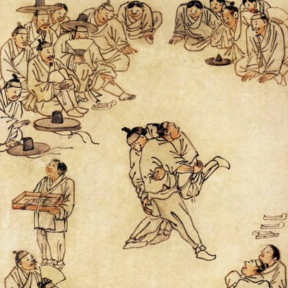 김홍도의 예술 레퍼토리는 풍속화, 산수화, 초상화, 불교적 주제 등 방대하다. 그러나 그는 평범한 사람들의 일상을 생생하게 포착하는 풍속화로 가장 잘 알려져 있습니다. '경무대', '레슬링', '농사' 등 그의 작품은 역동적인 구성과 인간의 상황에 대한 예리한 관찰, 그리고 대상을 보는 사람에게 사랑을 주는 미묘한 유머가 특징입니다.