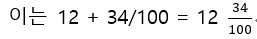 유한 소수: 12.34 / 12.34에서 "12"는 전체 수 부분이고, "34"는 분수 부분입니다.