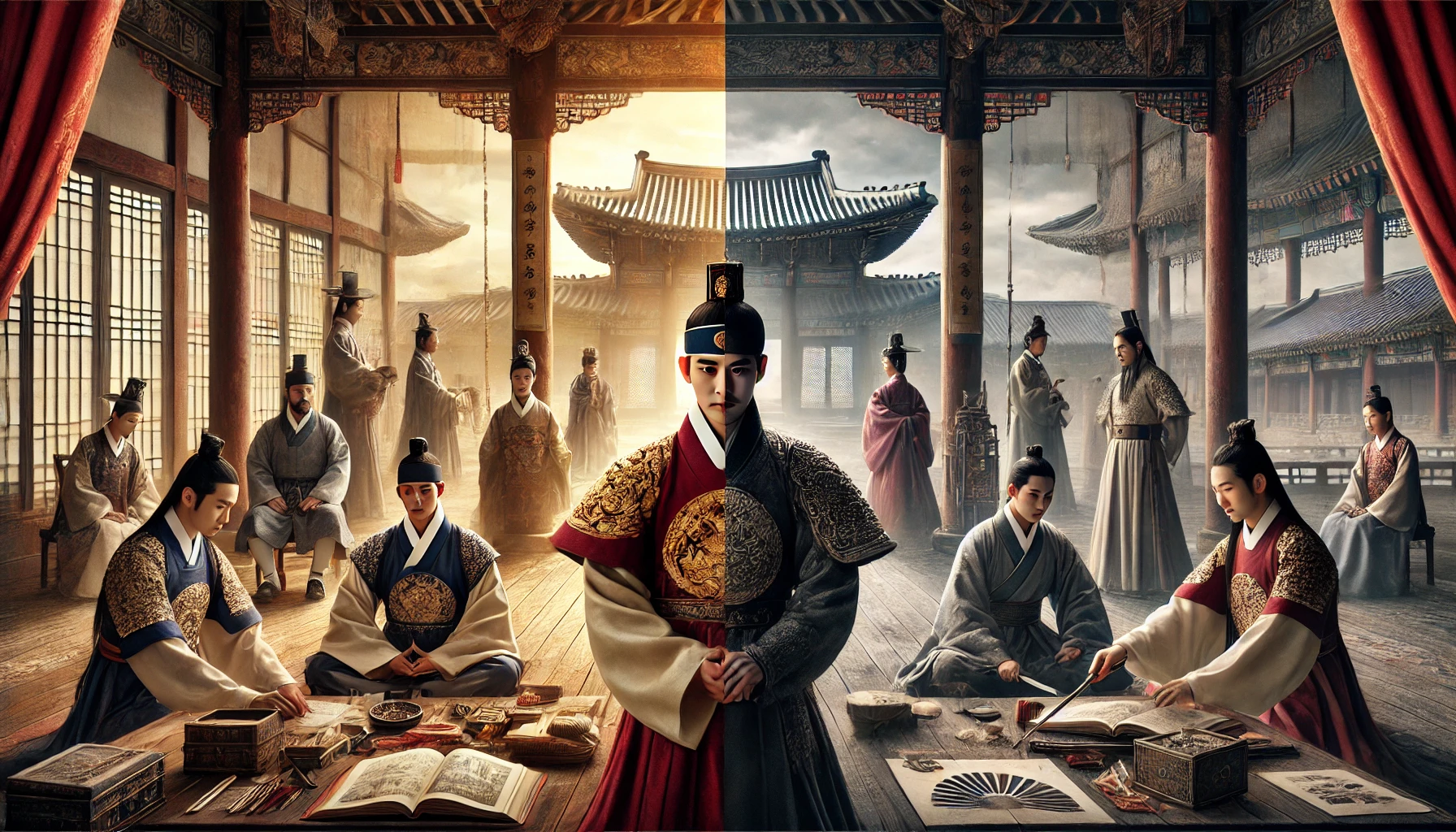 1637년 2월, 삼전도에서의 굴욕적인 항복이 끝난 후 며칠이 지났습니다. 인조는 창덕궁 한 모퉁이에서 두 아들과 마지막 대화를 나누고 있었습니다.