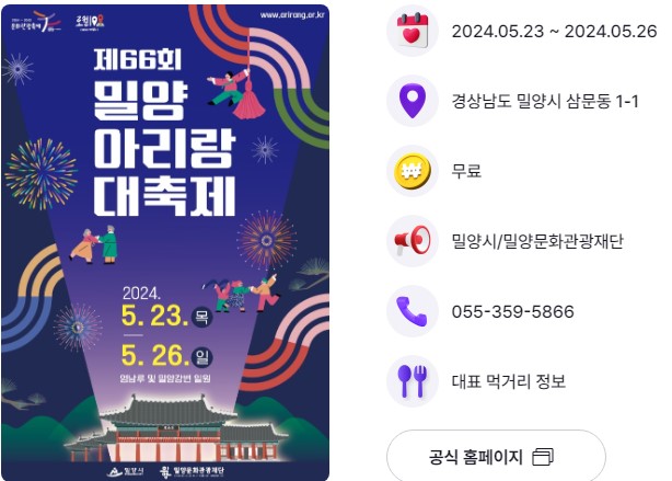 - 제66회 밀양아리랑대축제를 개최합니다.