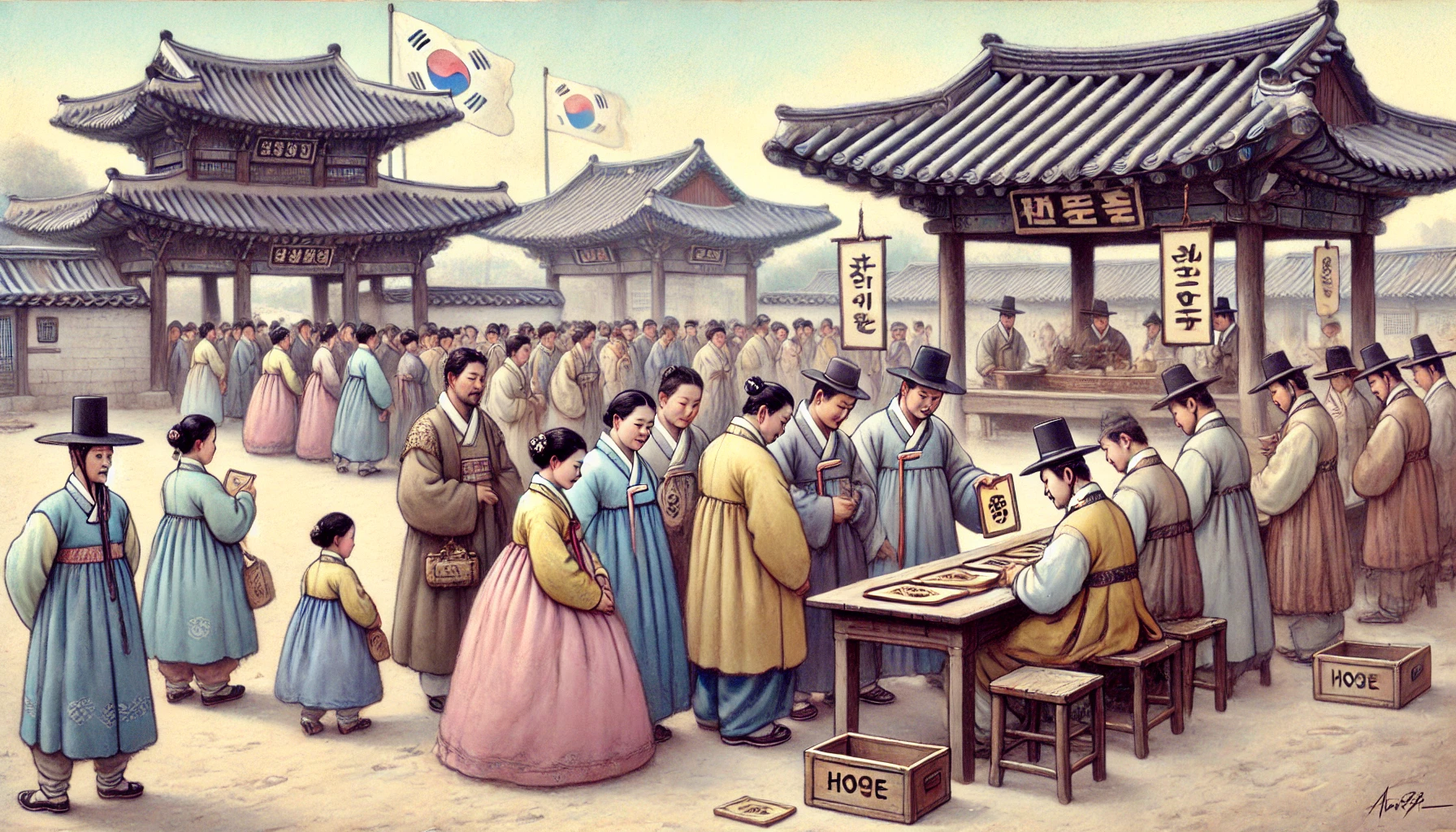 열흘 뒤, 약속한 날이 되었습니다. 황 서방은 난생 처음 느껴보는 긴장감 속에 이른 아침부터 옷깃을 여미고 관아로 향했습니다. 평소 장터 구경이나 하러 가던 관아 마당이 오늘따라 지옥 문턱처럼 스산하게 느껴졌습니다. 관아 마당은 이미 인산인해(人山人海)를 이루고 있었습니다. 난생 처음 겪는 일에 백성들은 두려움 반, 호기심 반으로 웅성거리고 있었습니다. "줄을 서시오! 신분대로 줄을 서란 말이다! 양반 나리들은 이쪽, 상놈들은 저쪽 끝으로 가라!" 아전(衙前)들의 고함 소리가 울려 퍼졌습니다. 황 서방은 자신과 비슷한 처지의 양인들 줄 꼬리에 섰습니다. 그는 품 속에 아버지가 물려주신 낡고 눅눅한 호적(戶籍) 종이 한 장을 아랫배에 소중히 감추고 있었습니다. '이것만 있으면 내 신분은 증명할 수 있겠지 나는 도망친 놈도 아니고, 세금도 꼬박 냈으니 괜찮을 게야' 스스로를 다독였지만, 심장은 자꾸만 방망이질 쳤습니다. 저 앞쪽 양반들이 선 줄은 금방 줄어들었습니다. 고을 향리가 직접 나와 "아이고, 진사 어르신! 이런 누추한 곳까지 어쩐 일이십니까!" 하며 굽신거리기 바빴습니다. 그들은 상아로 만든 번쩍이는 아패(牙牌)를 받아들고는 거만한 표정으로 황 서방 같은 상민들의 줄을 쳐다보며 혀를 찼습니다. "나라 기강이 바로 서는 모양이야 저 상놈 잡놈들 싹 다 족쳐야 해" 황 서방은 그 소리를 애써 외면하며 반나절을 꼬박 기다렸습니다. 드디어 차례가 되어 관아 사무실로 들어서자, 묵 냄새와 땀 냄새가 뒤엉킨 방 안에서 갓을 쓴 아전 하나가 날카로운 눈으로 그를 쏘아보았습니다. "이름이 무엇인가?" "황 황 아무개라 하옵니다." "본관은?" "창원 황가(黃家)이옵니다." "아비의 이름은? 조부의 이름은?" 황 서방은 묻는 말에 꼬박꼬박 대답했습니다. 아전은 붓을 들어 거대한 장부에 무언가를 꼼꼼히 적어 내려갔습니다. 그리고는 황 서방이 땀에 젖은 손으로 내민 호적 종이를 한참이나 들여다보더니, 고개를 끄덕였습니다. "음 양인(良人)이 맞군. 너는 군역(軍役)을 져야 할 정남(丁男)이다. 맞느냐?" "예 예 그렇사옵니다." "얼굴에 흉터나 점은 없는가?" "예? 아 예 없습니다." "키는 몇 척 몇 촌인가 수염은 어떠한가" 질문은 끝이 없었습니다. 마치 황 서방이라는 사람 자체를 종이 위에 그대로 옮겨 적으려는 듯했습니다. '내 아비의 아비 그 아비도 이 땅에서 뼈 묻고 살았는데 고작 이 종이 쪼가리 하나로 내 일생을 증명해야 하다니' 황 서방은 태어나서 처음으로 자신이 마치 관아의 물건 취급을 받는 듯한 모멸감을 느꼈습니다. '내 몸 하나가 내 것이 아니었구나 이것 또한 나라님 것이었구나' 모든 기록이 끝나자, 아전은 옆에 쌓여있던 작은 나무패 하나를 집어 들었습니다. 누런 버드나무로 만든 길이 세 치, 넓이 한 치 정도의 작은 패였습니다. 아전은 그 나무패 위에 벌겋게 달군 인두로 무언가를 새기기 시작했습니다. '타닥 타닥' 나무 타는 냄새와 함께 매캐한 연기가 피어올랐습니다. "자 받으라." 아전이 내민 나무패에는 '황 아무개(黃某)'라는 이름과 나이, 그리고 '양인(良人)'이라는 두 글자가 선명하게 새겨져 있었습니다. "이것이 너의 호패다. 잃어버리거나 훼손하면 큰 곤장을 맞을 것이니, 목숨처럼 지니도록 하라!" 황 서방은 떨리는 손으로 자신의 '호패'를 받았습니다. 인두질로 인해 아직 따뜻한 온기가 남아있는 작은 나무패. 이것이 이제 자신을 증명하는 유일한 물건이었습니다. 그가 관아를 나서려는데, 옆 줄에서 실랑이가 벌어졌습니다. "나는 양인이오! 내 아비가 양인이었단 말이오!" "시끄럽다! 네놈의 호적에는 네 어미가 노비(奴婢)로 되어 있다! '일천즉천(一賤則賤)' 부모 중 하나라도 천하면 천한 법! 너는 양인이 아니라 노비다!" "아니오! 억울하오! 아비가 양인이면 자식도 양인이거늘!" "그것은 네놈 사정이고! 나라 법이 그렇다! 여봐라, 저놈에게는 잡목패를 내어주어라!" 아전은 그 사내에게 양인들이 받는 누런 버드나무패가 아닌, 거칠고 시커먼 잡목패를 흙바닥에 '툭' 던져 주었습니다. 사내는 그 목패를 받아 들고 망연자실 그 자리에 주저앉아 울었습니다. 황 서방은 차마 그 모습을 보지 못하고 서둘러 관아를 빠져나왔습니다. 손에 쥔 호패가 어쩐지 무겁게 느껴졌습니다.