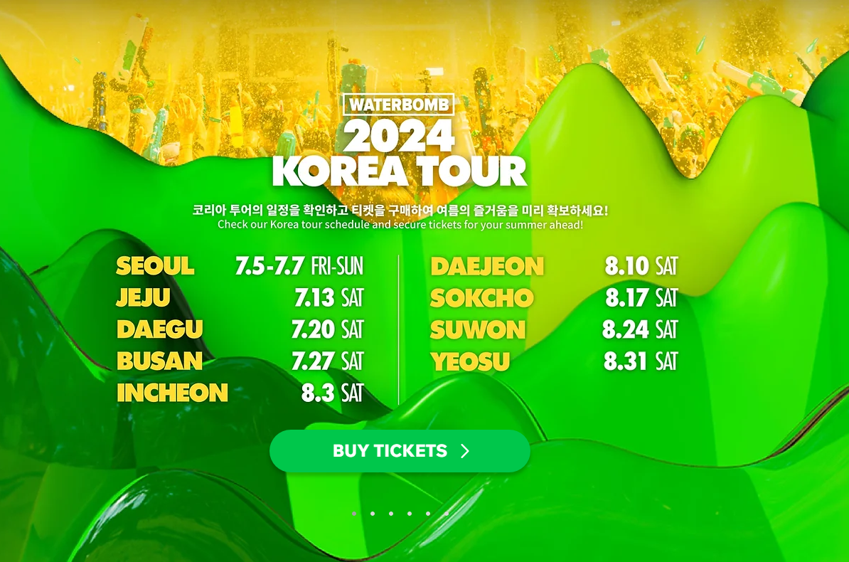 워터밤 뮤직 페스티벌 WATERBOMB 2024 MUSIC FESTIVAL KOREA_ A Water Theme Music Festival. Waterbomb represents summer fun with dance music artists and dynamic water activities.