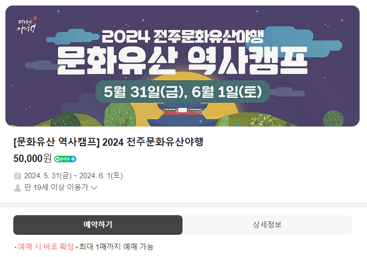1인 1 매라고 합니다. 예약하실 분은 예매하기를 눌러 주세요.